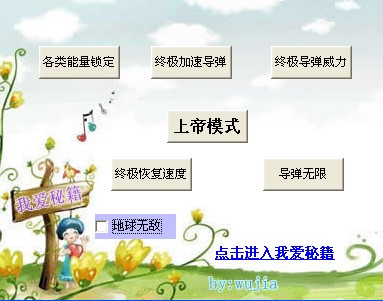 使用说明:上帝模式,开启后会一直全屏消敌,中途无法取消,到下一关自动取消。