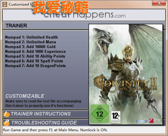 2、游戏主菜单按 [F1] 激活修改器,激活成功会有 Activated 声音提示