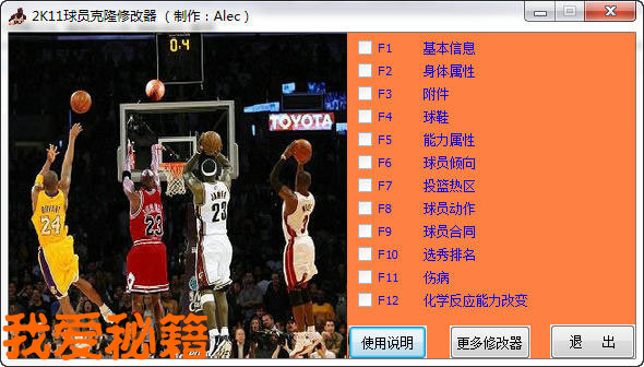 2K11克隆修改器,可以克隆球员的大多数信息,就像2K10的那样。可以用于任何模式,当然,新秀的编辑也是完全可以的,这也方便了大家制作新秀,复制其模板:(已修复)