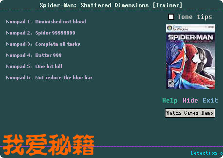 对应游戏版本:Spider-Man: Shattered Dimensions光盘版 或 硬盘版 /破解补丁