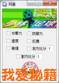 《少林足球》这款游戏剧情还是不错的,支持下!呵呵!本人玩游戏只为了看剧情,不追求什麽的,粗略做了修改器,做得不好,见谅下,需要的ZYM就下载吧!!!