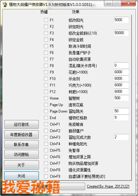 | 2010.12.15 | 植物大战僵尸v1.0.0.1051多功能修改器v1.9.5 | - | - |