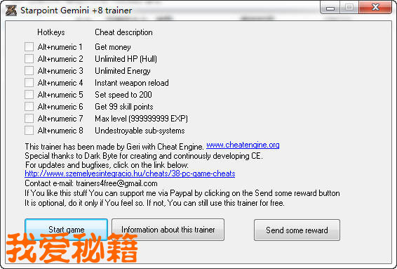 | [Alt] + [小键盘 8] | 子系统获超级生命(修理界面) |