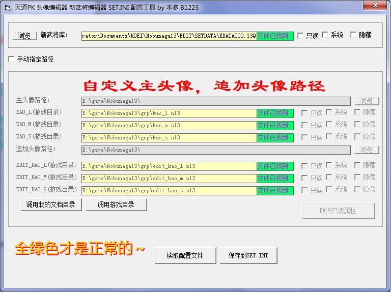2、运行SET.exe 对目录,进行相应设置, 要全部变绿色,才是自常。