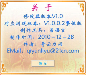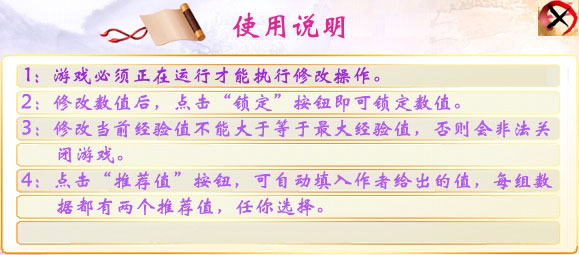 可修改江小鱼的所有属性。修改项目:体力、真气、攻击、防御、属性点数、技能点数、敏捷、内劲、经验、回复、回气、移动速度、攻击速度、命中、闪避、会心、格挡、等级、怒气值、金钱。