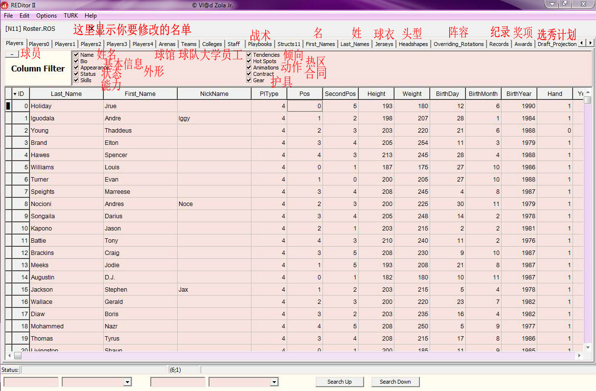 对于大家关注的体型问题,这个修改器也是没有各项体型的修改(项目里面我没发现。我制作修改器的时候查看球员的各项属性也没有发现细节体型的修改,应该2K11就是没有了,只有整体体型的修改,这个功能在编辑模式下调节体重就能实现)