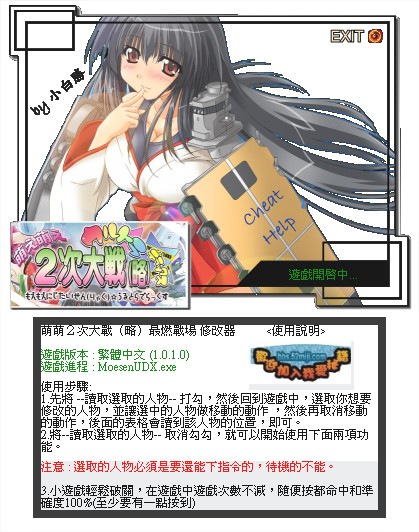 简单说明一下,我修改是针对一个游戏裡面人物设计的(被你选中的那个人物)也可以换人,只要重新勾选 --读取选取的人物-- ,步骤如说明