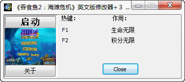吞食鱼修改器。由于本人能力有限,没能修改时间和大小。请见谅。用法,打开修改器,按相应的热键。