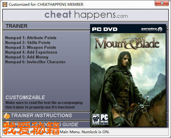 2、游戏主菜单按 [F1] 激活修改器,激活成功会有 Trainer Activated 声音提示