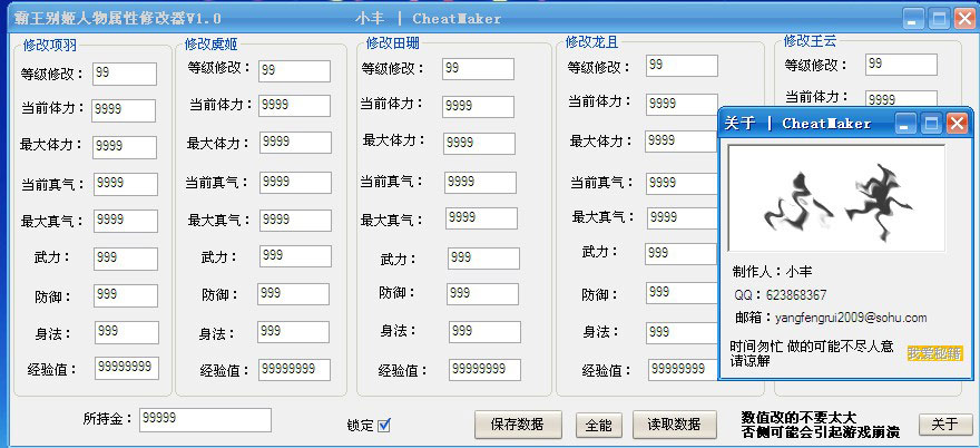 此款修改器能修改所有人物 先运行游戏,再运行修改器