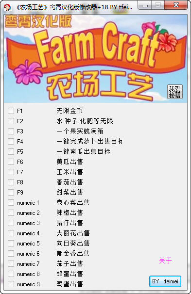 游戏玩了一多半 基本上修改了所有作物 (还没有出来的是我没有玩到) 只要按修改器就可以达成通关目标 不用再花大把时间开垦种植了……