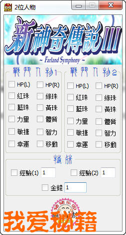 <新神奇传说3>这款游戏剧情还是不错的,支持下!呵呵!本人玩游戏只为了看剧情,不追求什麽的(物品、装备等,够玩就行),粗略做了修改器,做得不好,见谅下,需要的ZYM就下载吧!!!