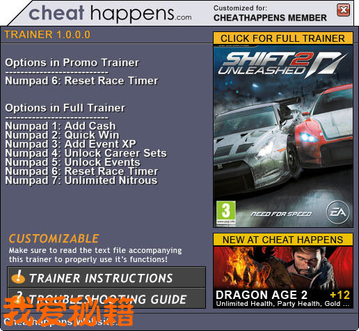 极品飞车15:变速2通用修改器 + 2