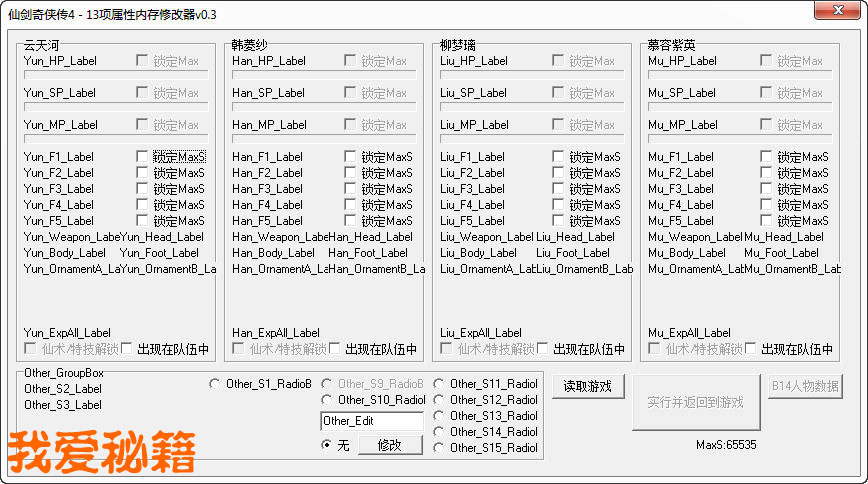 2.取消修改五灵属性值(在状态栏里最多只能显示4位数),因为如果火的值为65535,那么敌人用水仙术打你的话……。要用仙术造成大量伤害,请锁定人物的灵(五围最后一个)。