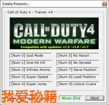 修改器适用COD4 v1.4 / v1.5 / v1.6 / v1.7 4个版本