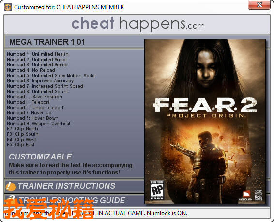 2、在真正游戏时按 [F1] 激活修改器,激活成功会有 Trainer Activated 声音提示