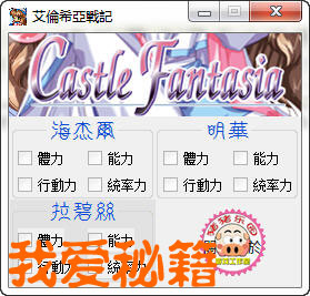 <艾伦希亚战记>这款游戏剧情还是不错的,支持下!呵呵!本人玩游戏只为了看剧情,不追求什麽的(物品、装备等,够玩就行),粗略做了修改器,做得不好,见谅下,需要的ZYM就下载吧!!!(WIN 7系统没测试)