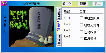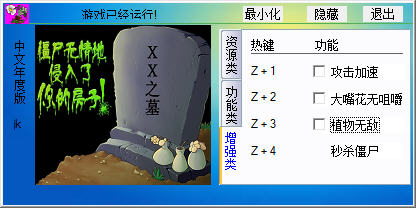 PS: 有网友PM说 热键冲突 例如alt+1 播放器跳歌了 ctrl+F1 某某窗口弹出来了 等等 现在改为普通键 也方便本本用户 还有要求修改器后台运行.........