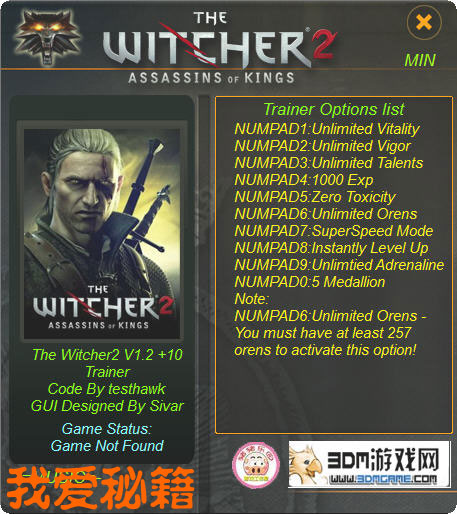 | 2011.05.28 | 巫师2:国王刺客v1.0-v1.2修改器 + 10 | - | - |