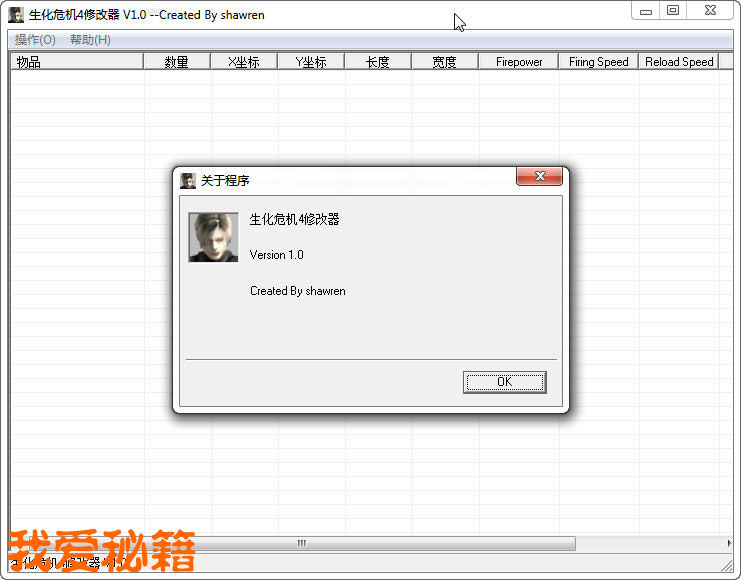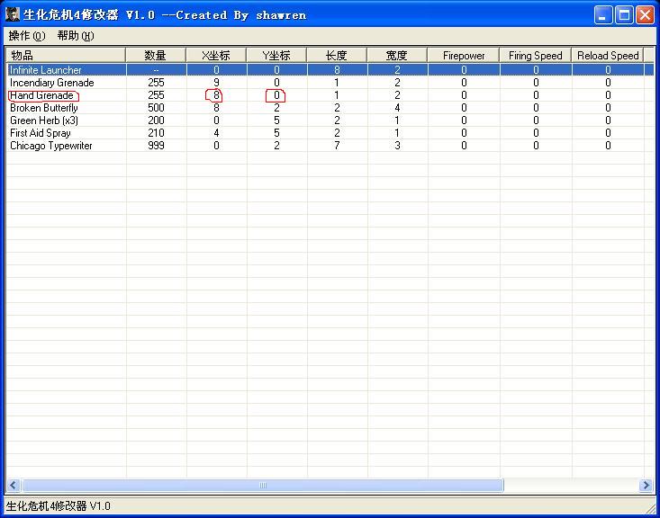 通过参考 会员 大胖子 和 会员 zhu8808 的帖子,研究了一下生化4物品地址,确定出能在武器物品栏中正确显示的物品,现在已完成修改器,拿出来与大家分享,大家多多支持哦~~~