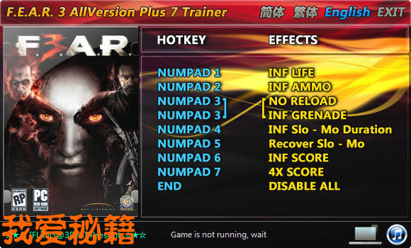 无需装弹 和 无限手雷 均用数字键3来启用(只需按一次,两个功能同时生效),对此造成的不便请谅解...
