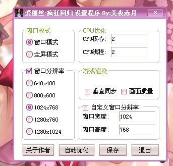 AliceConfig.exe 请放到游戏目录里运行 本程序由赤月神社の美夜赤月(十六夜·流歌)制作