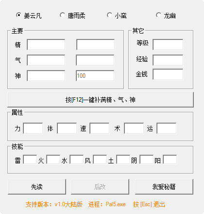 仙剑奇侠传5:前传v1.01属性修改器 + 10