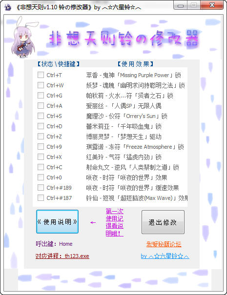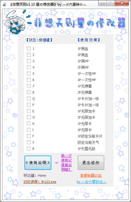 东方非想天则v1.10《星、铃》修改器 这次做的修改器功能多了