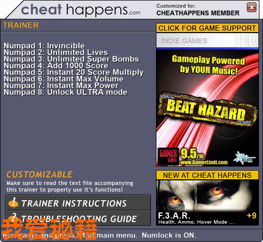 2、游戏主菜单按 [F1] 激活修改器,激活成功会有 Trainer Activated 声音提示