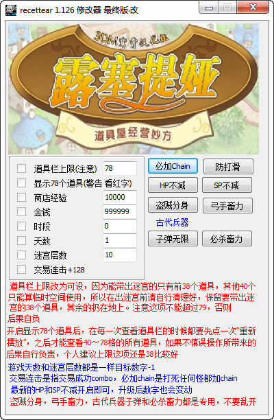 还有就是修改器默认了HP是165 SP是39。。。如果你要求不是很高的话进迷宫后打勾即可