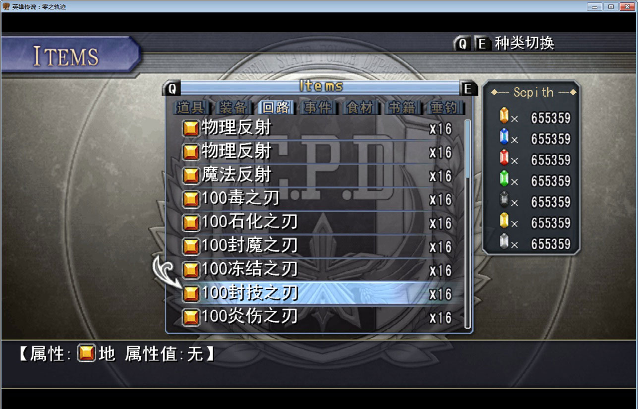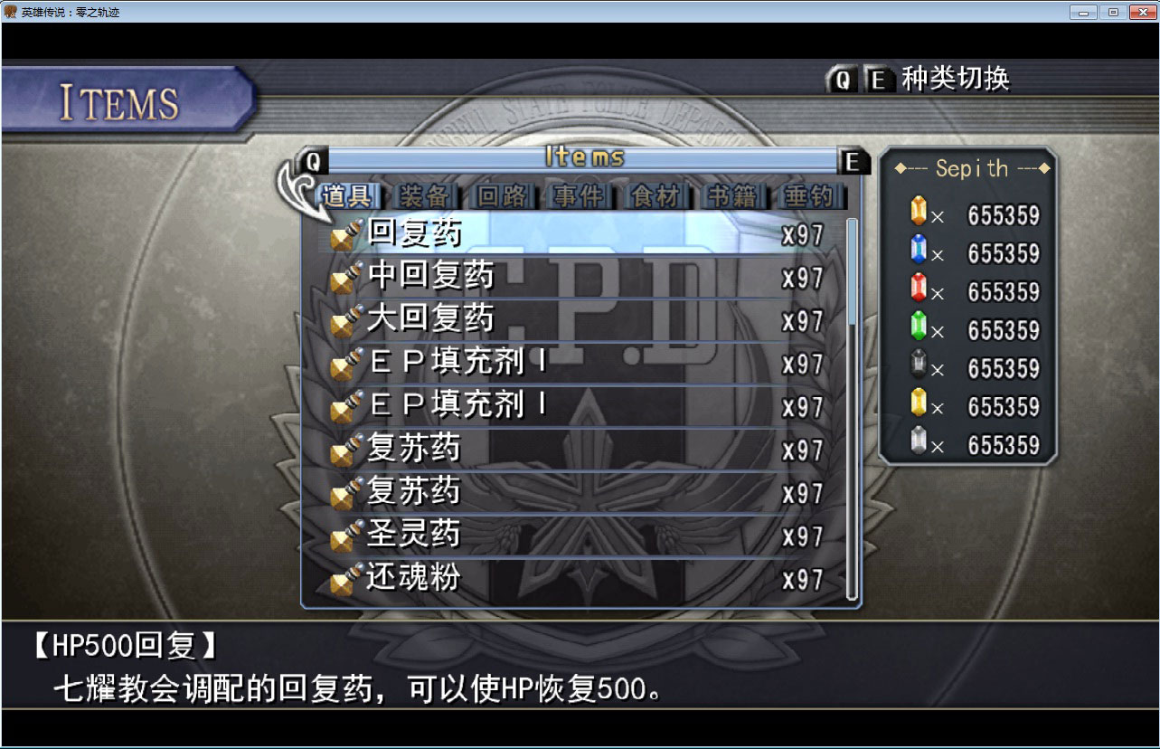 呃,稍微修改了下,为了不影响剧情,仅仅对于道具,装备,回路和食材修改了,可以烹调和钓鱼得到的物品也没有修改,当然剧情物品也没有动过,外加了Mira 9999999化,七曜碎片也修改了下 剧情是刚开始的序章的地下空间,有兴趣的可以试试,解压后放到游戏目录下的savedata下面即可