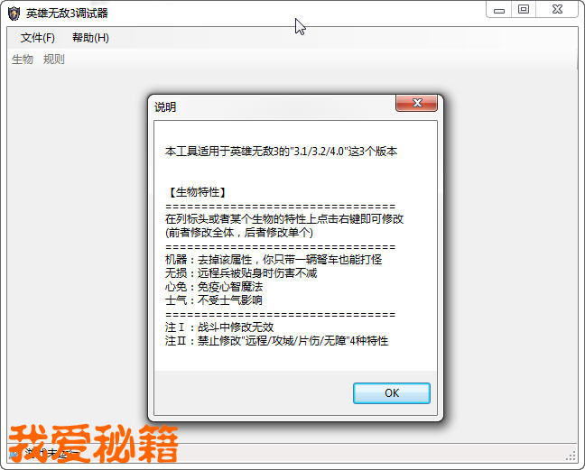 本工具适用于英雄无敌3的"3.1/3.2/4.0"这3个版本。