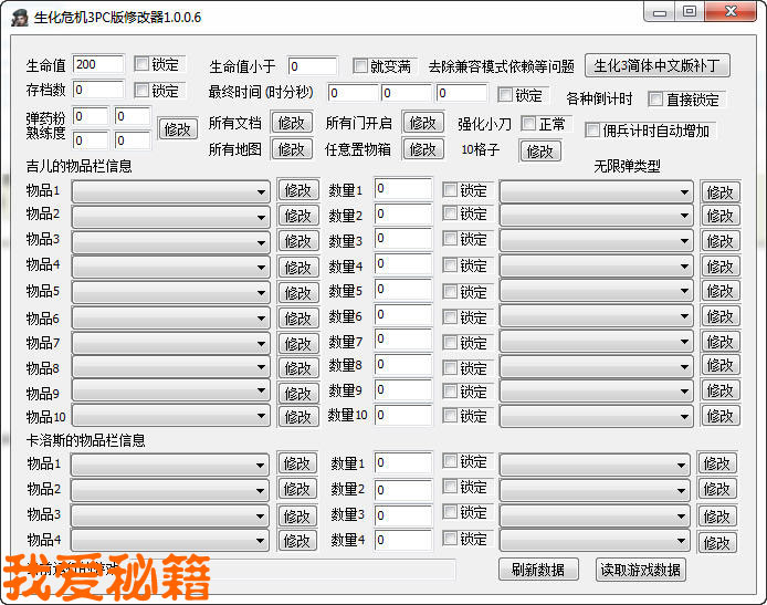 生化危机3修改器,支持简体版,XP复刻版,支持雇佣兵模式.