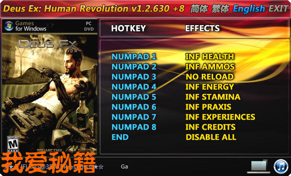 | 2011.09.21 | 杀出重围3:人类革命v1.2.630修改器 + 8 | - | - |