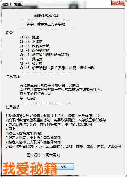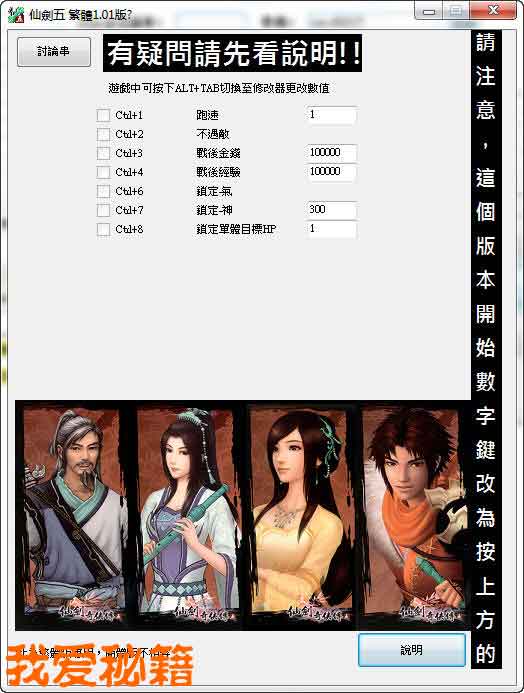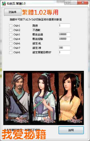 仙剑奇侠传5v1.0-v1.02繁体版专用修改器 + 3