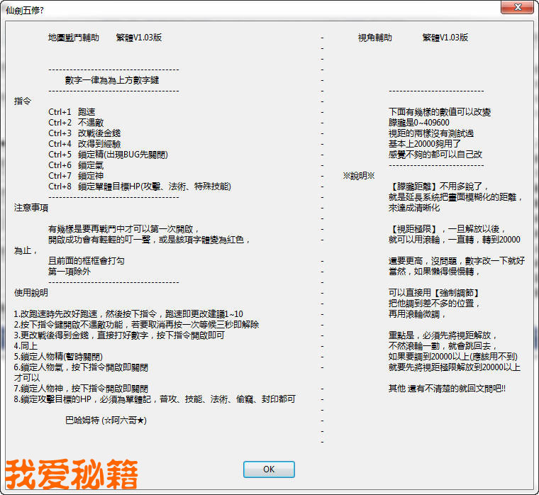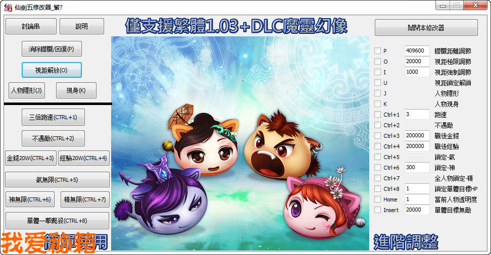 仙剑奇侠传5 & DLC魔灵幻像v1.03繁体版专用多功能修改器