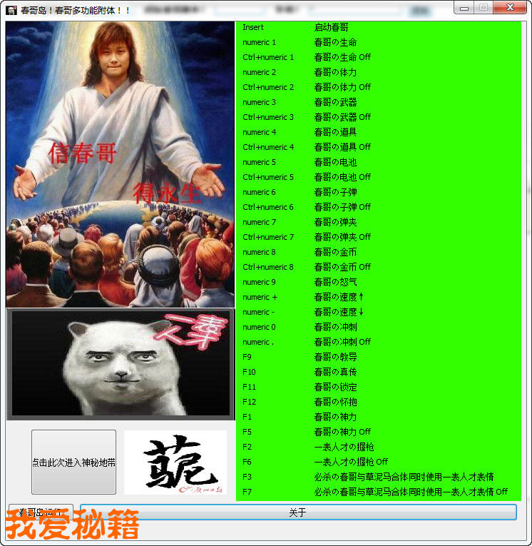 | [Ctrl + [小键盘 2] | 关闭无限体力 |