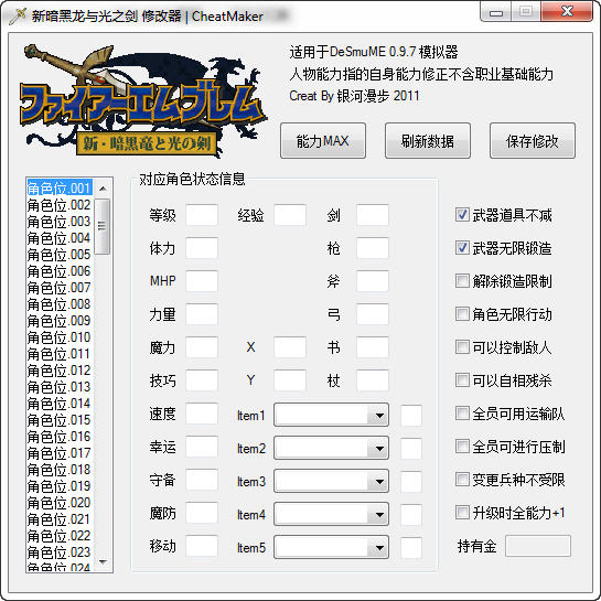 NDS火焰纹章:新暗黑龙与光之剑v2.0汉化版多功能修改器