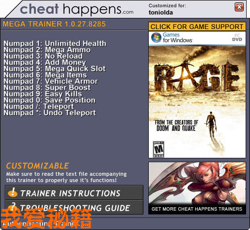 | 2011.10.12 | 狂怒RAGE v1.0.27.8285修改器 + 10 | - | - |