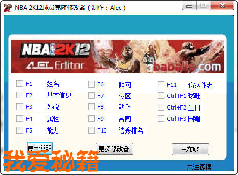 1、本修改器是将一个球员(A)的指定属性克隆到另一球员(B)上