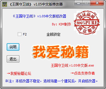 注:本修改器。必须进入战场建一个建筑后开启修改器。效果呢 杀了一个敌人就知道了。
