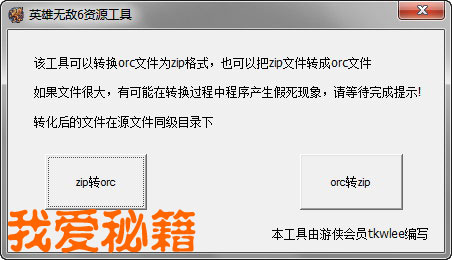 这个工具可以把英6里恶心的*.orc格式转成常用的压缩文件格式*.zip,同时也支持反过来把zip转成orc。