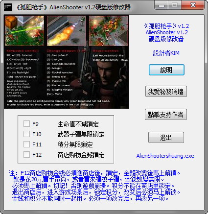 上次发了1.0版的。这次再1.2版的。。。使用注意事项都在修改器上写了。自己好好看。研究吧。 很简单。