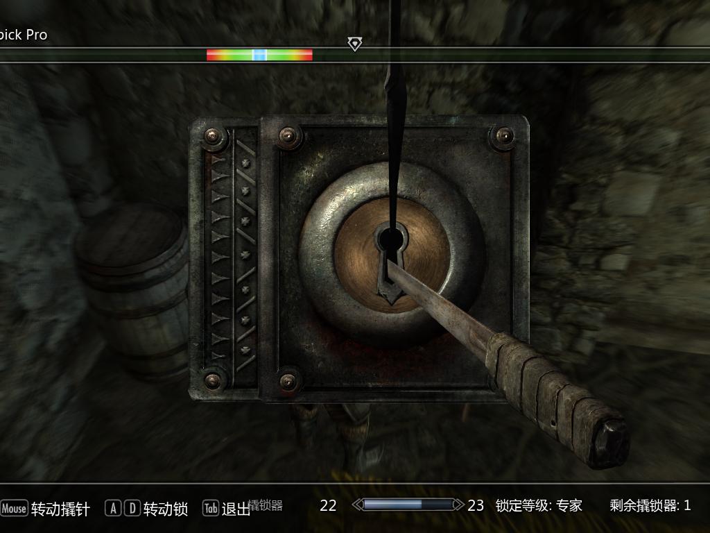 锁的难度越高颜色部分越少中间的蓝条越短;有了这MOD,大大减少了开锁的时间,提高了开锁的效率。