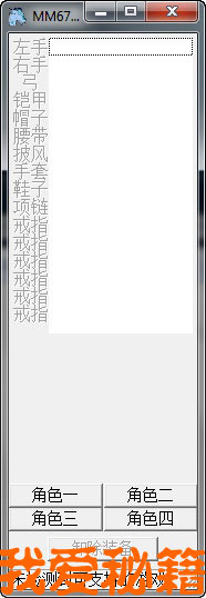 按下角色按钮,可以在最上方装备列表中显示相应角色的装备情况,若有装备的显示装备物品名称,无装备的显示为空白,分别对应十六个部位。