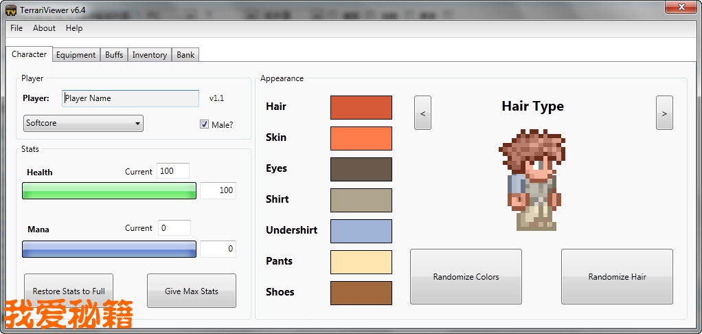 泰拉瑞亚Terraria v1.1.1角色编辑器:TerrariViewer