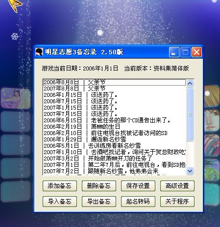 | 2011.12.22 | 明星志愿3系列通用备忘录工具v2.50 | - | - |