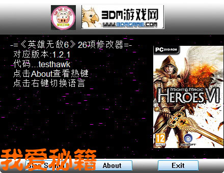 20111023:解决修改器在百游正版里使用时会遇到的各种问题(例如打不开城堡界面,战斗后锁死,打不开英雄菜单等等),注意看下个版本的使用说明. 解决一些已知问题。 功能更新至26项.