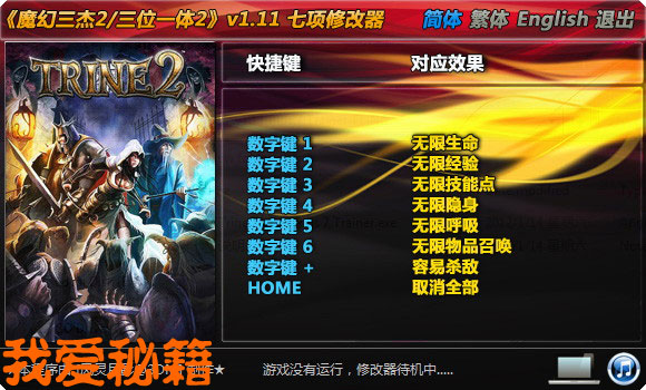 点击简体、繁体、English,可以切换语言 (切换语言后修改器将把该语言设置为默认语言)