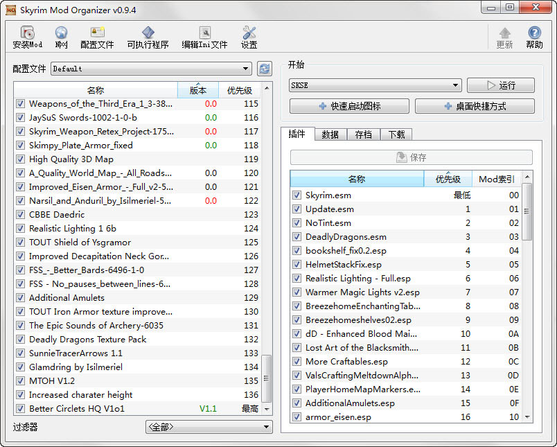 如果安装了Skse需要在MO里选择Skse启动,你还可以创建一个桌面快捷方式或快速启动图标来运行游戏。